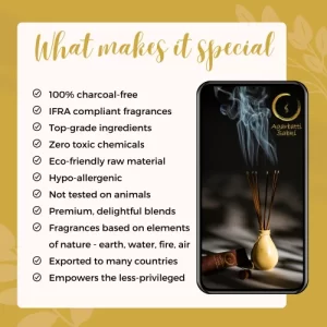 >> Our incense sticks are made from sustainably sourced, top quality raw material; and are free from toxic chemicals, animal-cruelty or child labour.